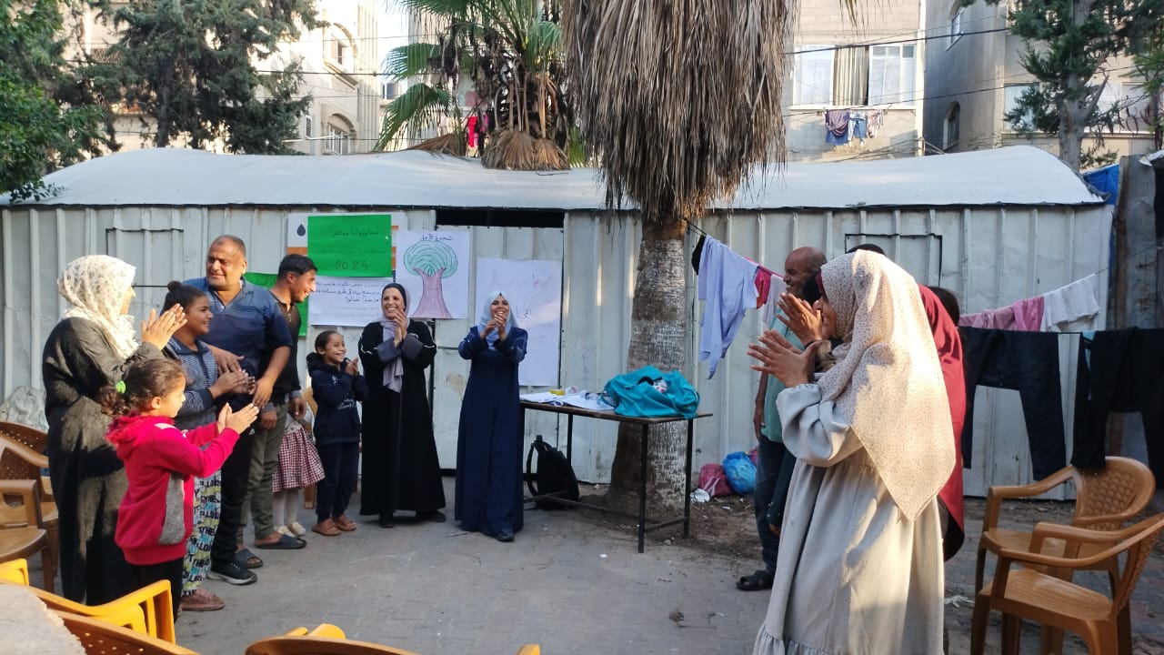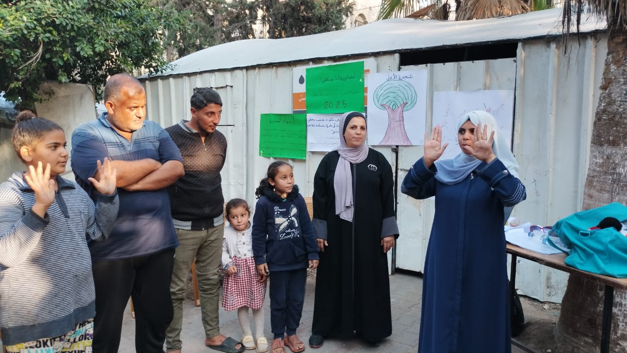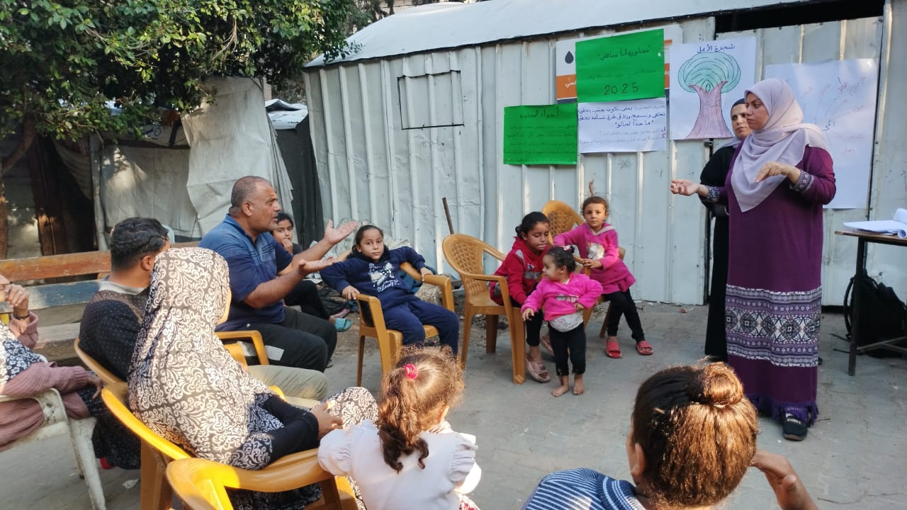 البدء بتنفيذ المجاورة الأولى لدليل أنا وعائلتي لأربع عائلات فى مخيم نزوح السكة المنطقة الوسطي البريج .