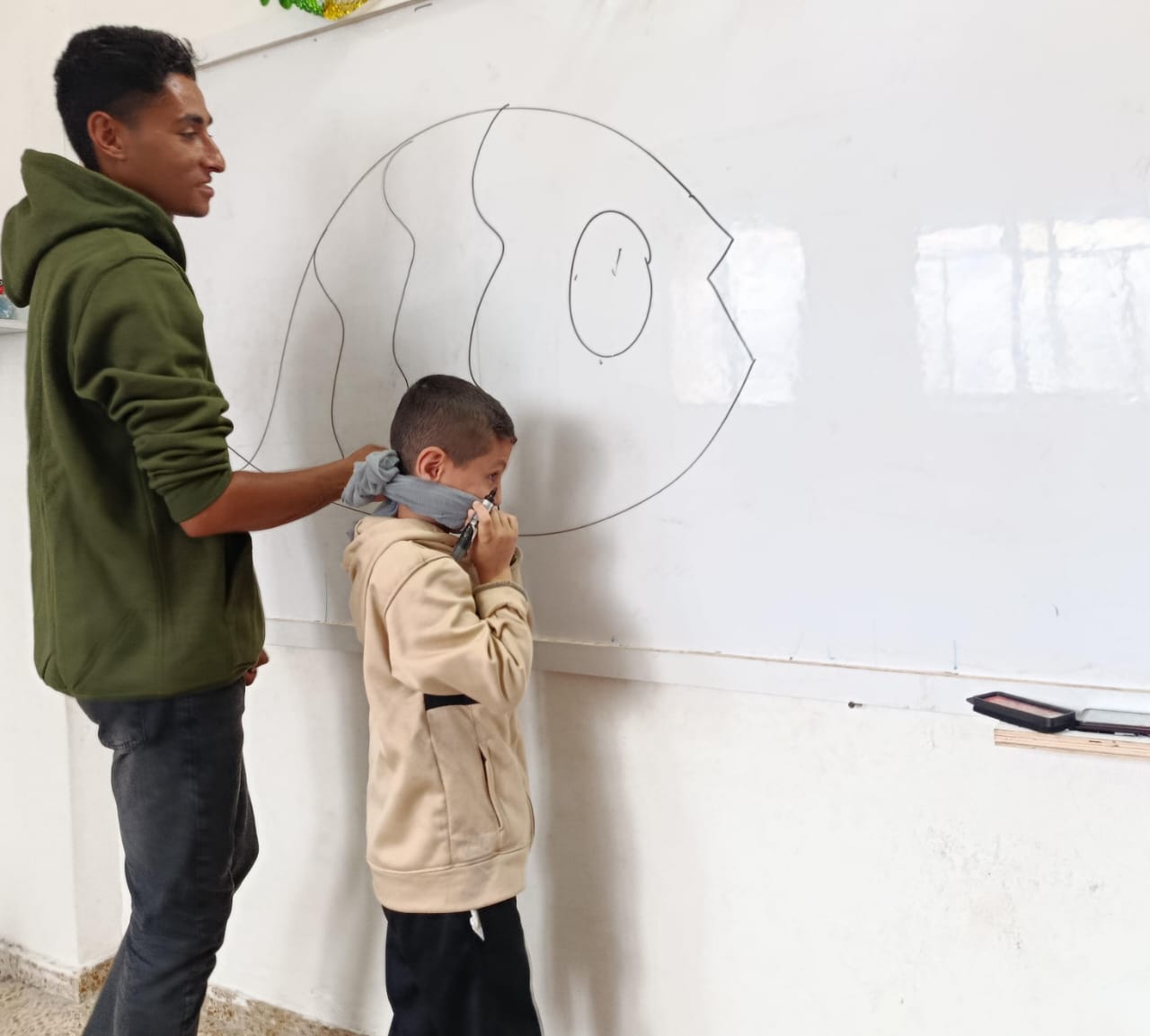 صور من جلسات الدعم النفسي للأطفال المحافظة الوسطي مخيمات النزوح