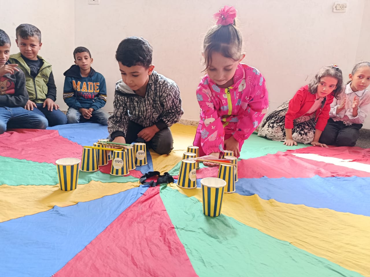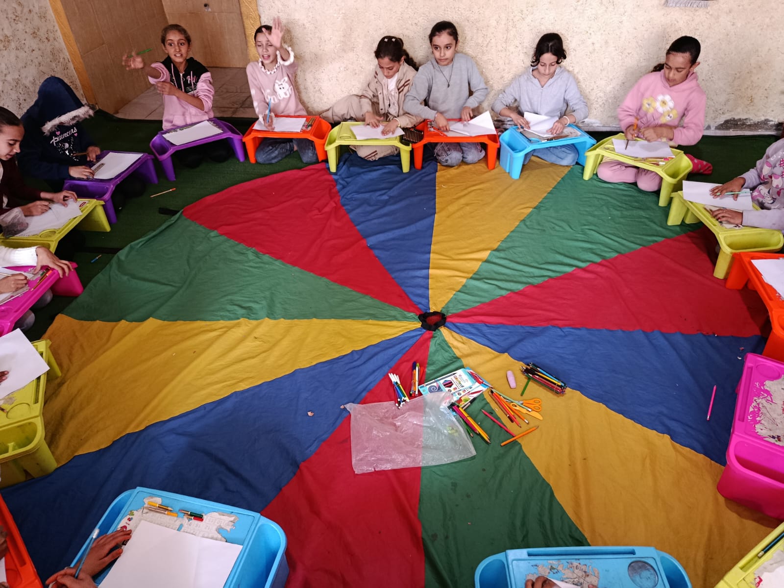 صور من جلسات الدعم النفسي للأطفال المحافظة الوسطي مخيمات النزوح .
