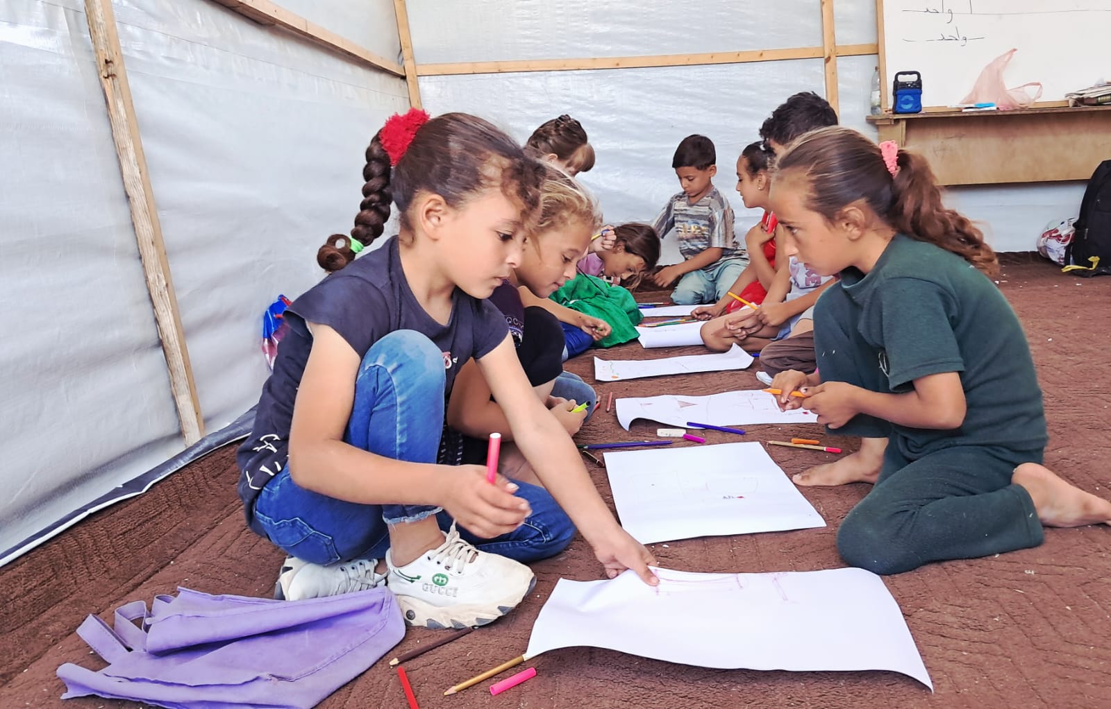 صور من جلسات الدعم النفسي للأطفال المنطقة الوسطى مخيمات النزوح.