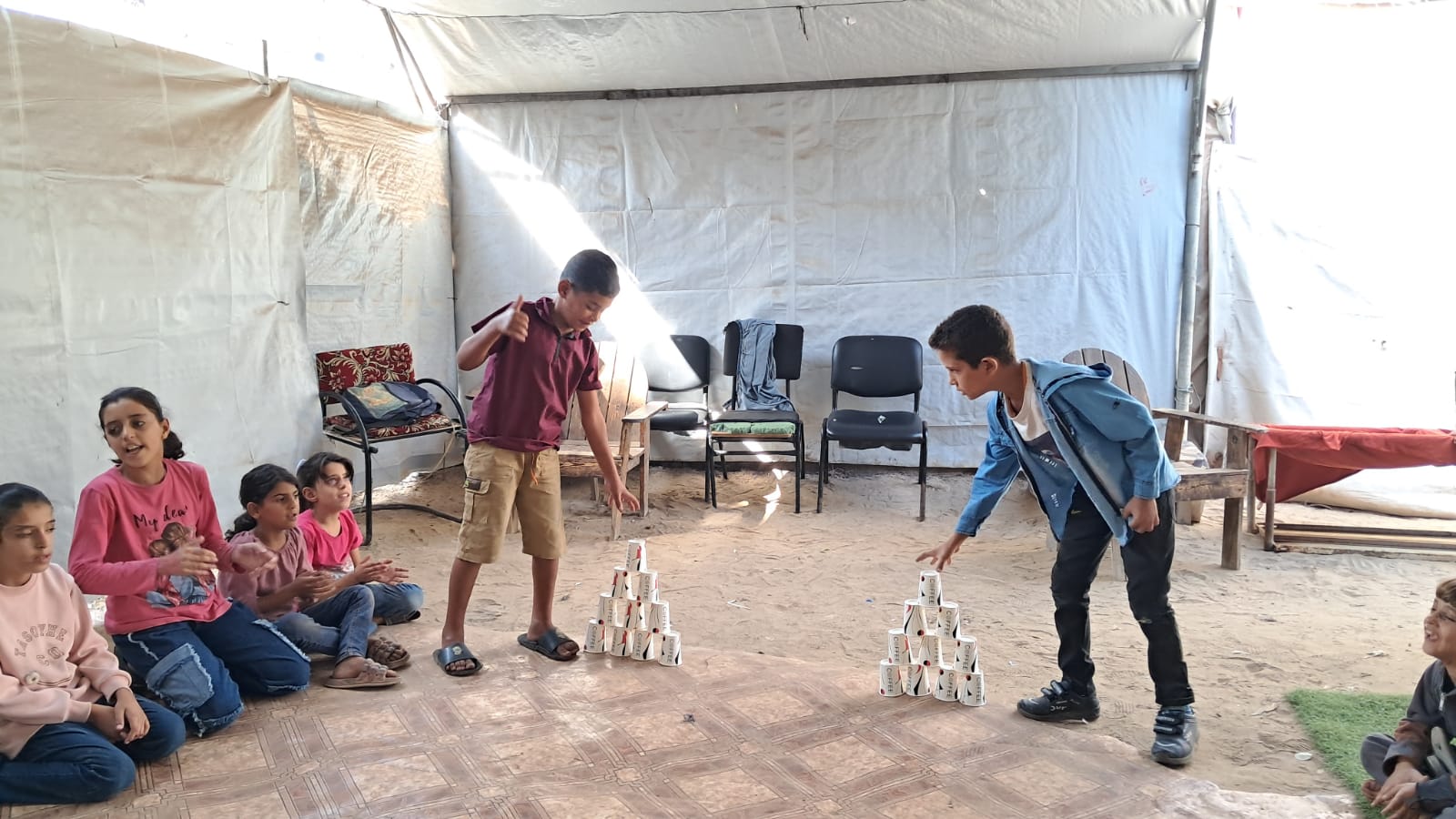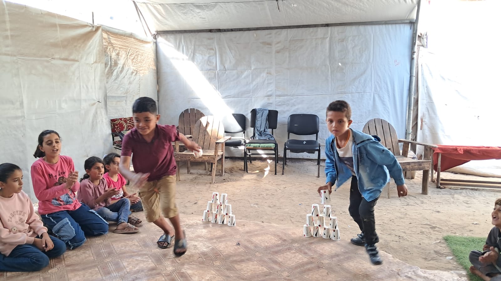 جلسات الدعم النفسي للأطفال المحافظة الوسطي مخيمات النزوح .