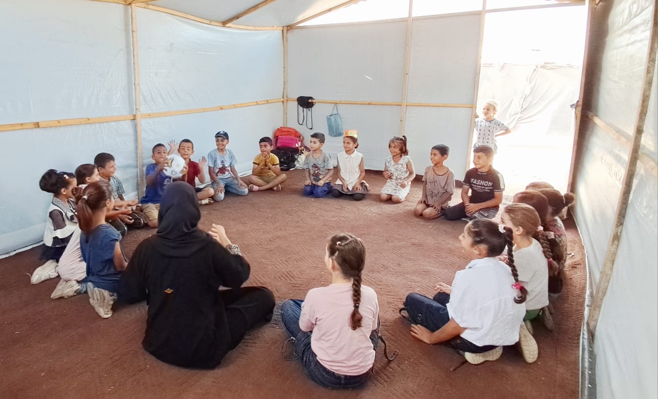 ضمن جلسات الدعم النفسي للأطفال في منطقة الزوايدة مخيم نزوح أرض أبو عمرة