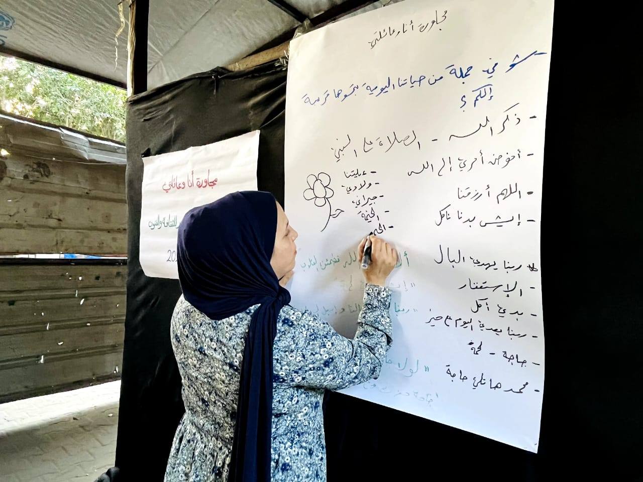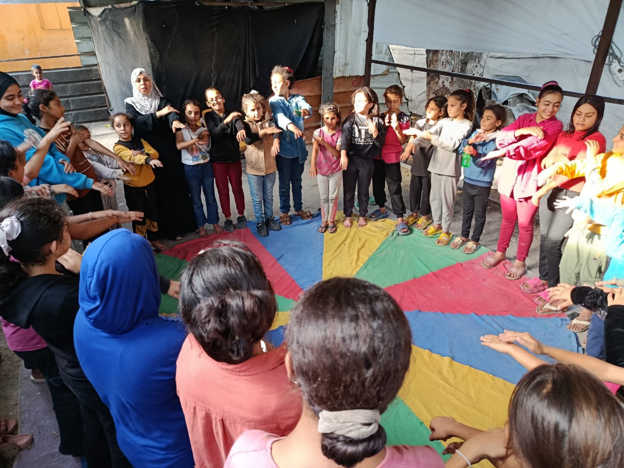 ضمن جلسات الدعم النفسي للسيدات من خلال أدوات المسرح والدراما فى مدينة دير البلح مخيم نزوح المناصرة