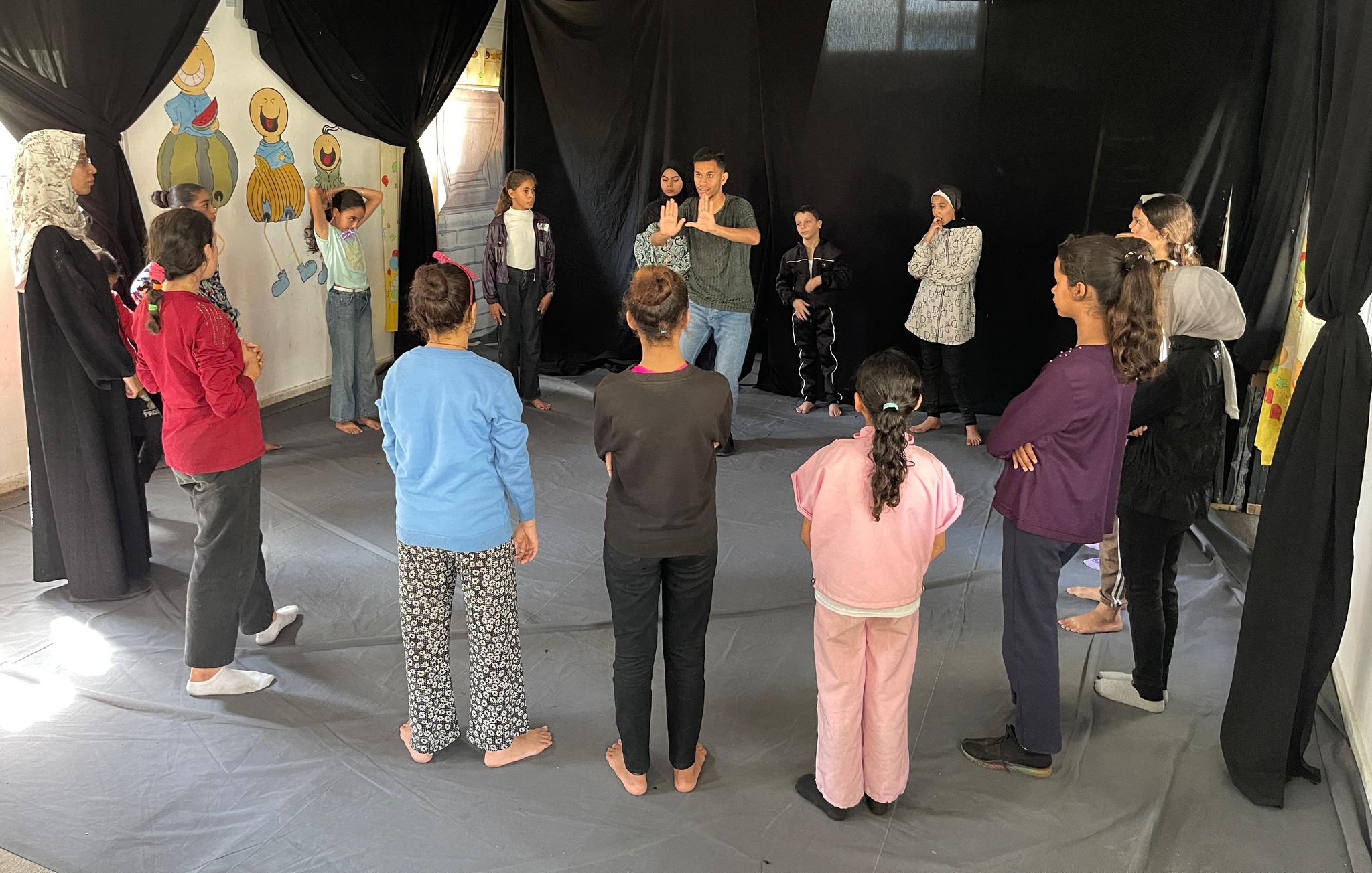 ضمن جلسات الدعم النفسي والأنشطة الدرامية الخاصة بالأطفال