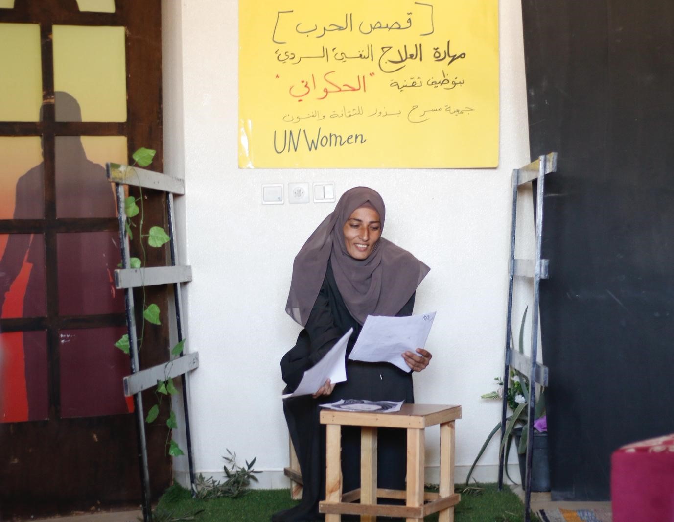 اختتمت اليوم جمعية مسرح بذور للثقافة والفنون المحافظة الوسطي الجلسات التدريبية بعنوان "حكايا الحرب" مهارة العلاج النفسي السردي بتوظيف تقنية الحكواتي . استمر التدريب لمدة خمسة أيام متواصلة بواقع 15 ساعة تدريبية بمشاركة 22 سيدة من مخيمات النزوح حيث تضمن التدريب على العديد من المهارات( فن الحكواتي - السرد القصصي - التمثيل )وقد أثنت المشاركات بالجلسات على التدريب الذي ساهم في رفع خبراتهن في مجال الدراما والمسرح.